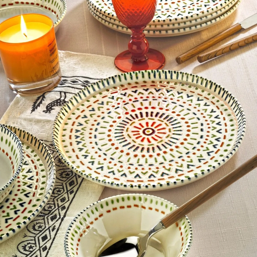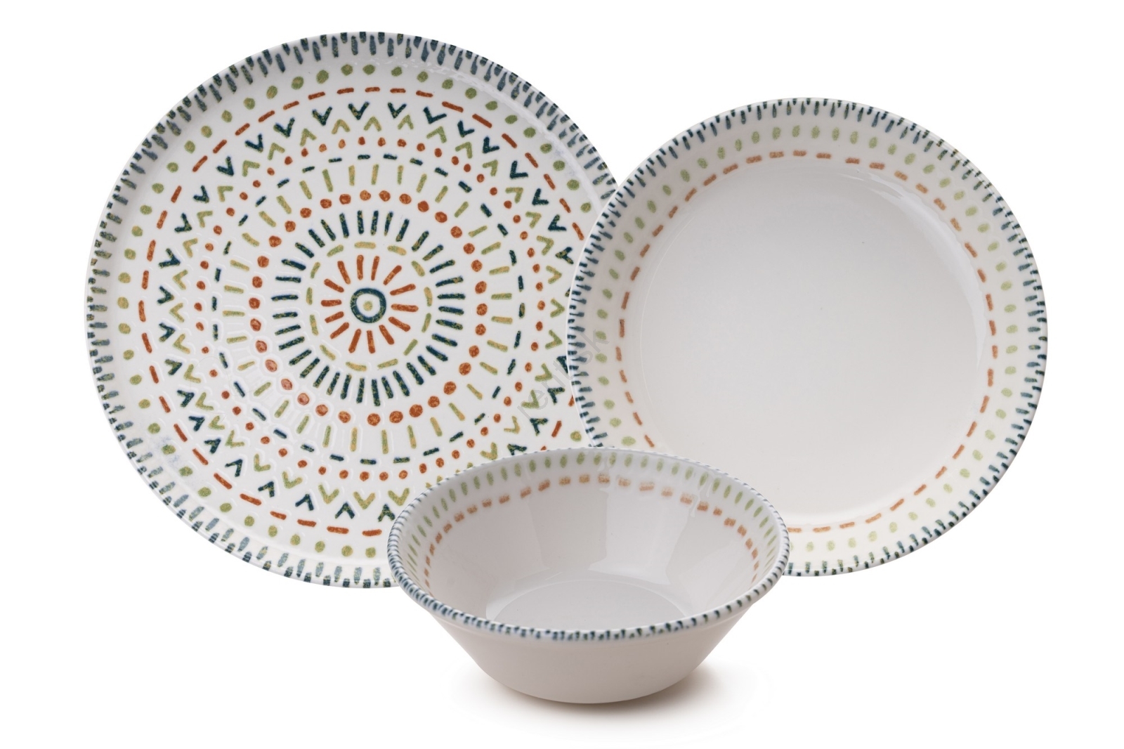 12-dielna pestrofarebná jedálenská súprava z porcelánu