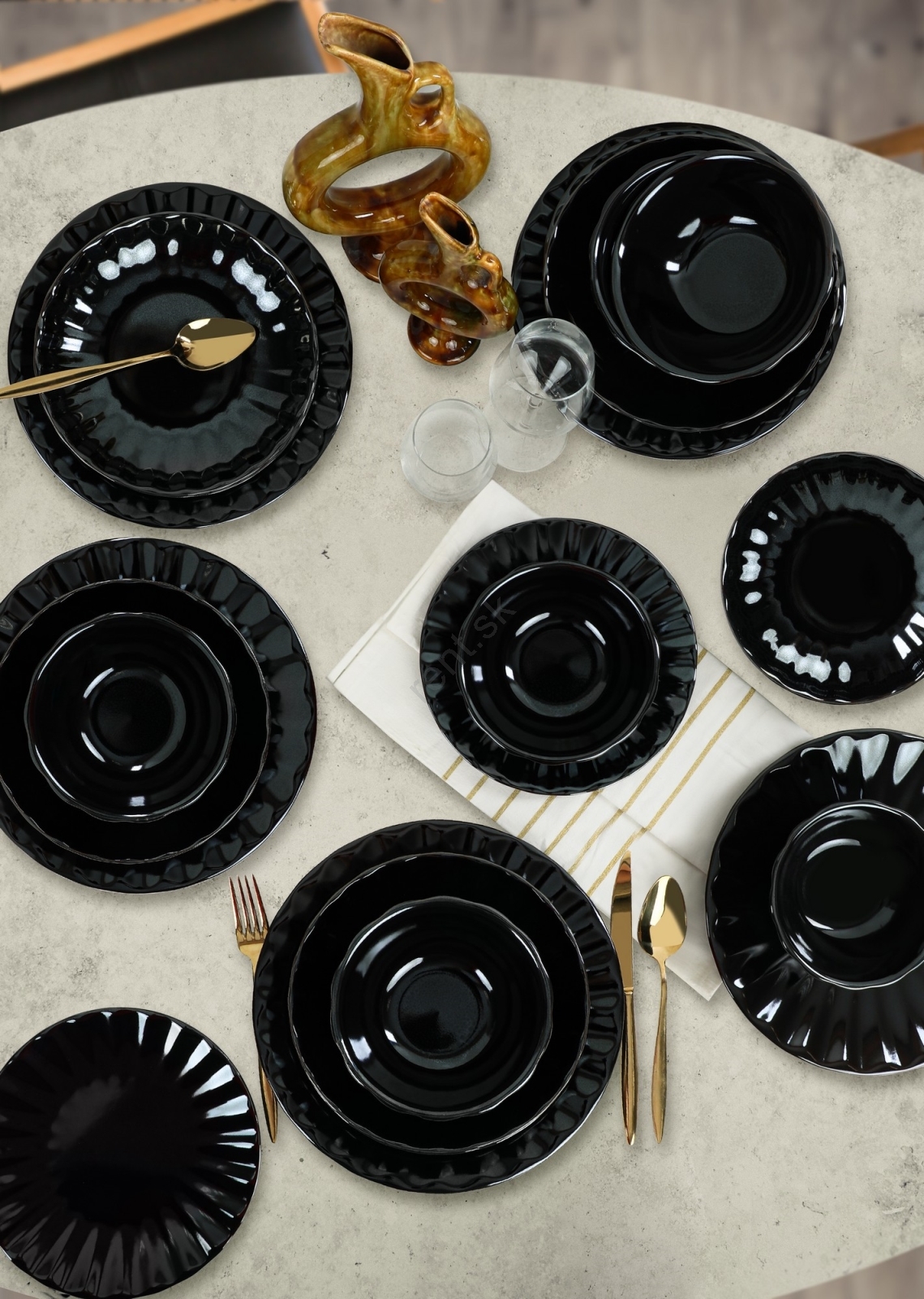 24-dielna jedálenská súprava čierna/kamenina