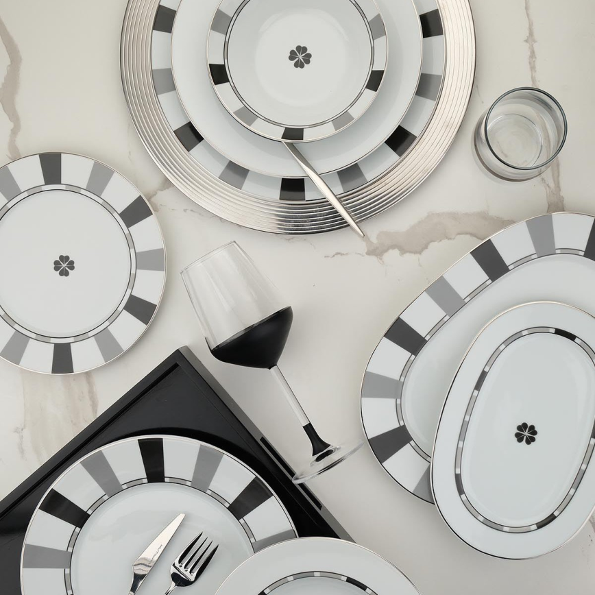 27-dielna jedálenská súprava, biela/šedá, porcelán