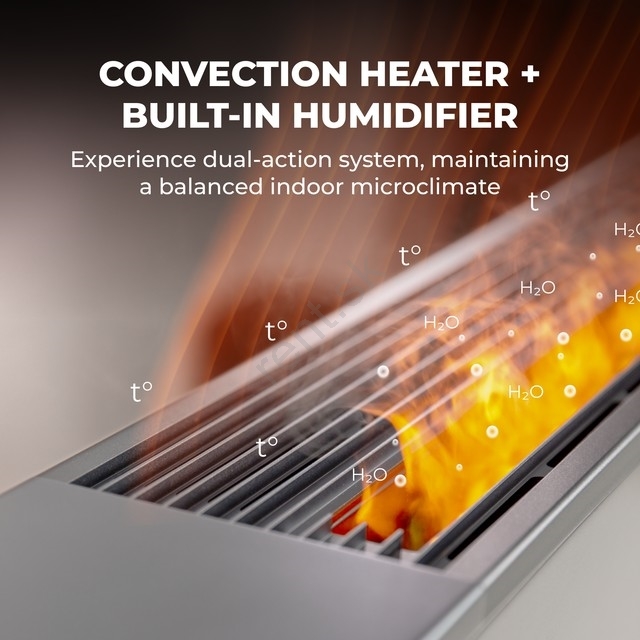 Má dekoratívny efekt „plameňa“ vďaka LED osvetleniu a tvorbe pary, ktorý vytvára atmosféru podobnú skutočnému ohňu, no bez plameňov a dymu.