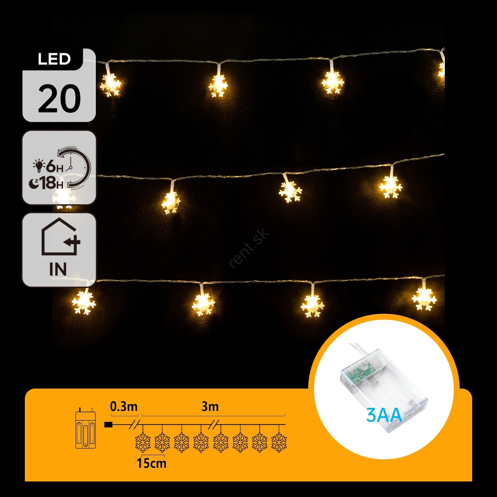 Aigostar - LED  reťaz 20xLED/3xAA 3,3m vločky