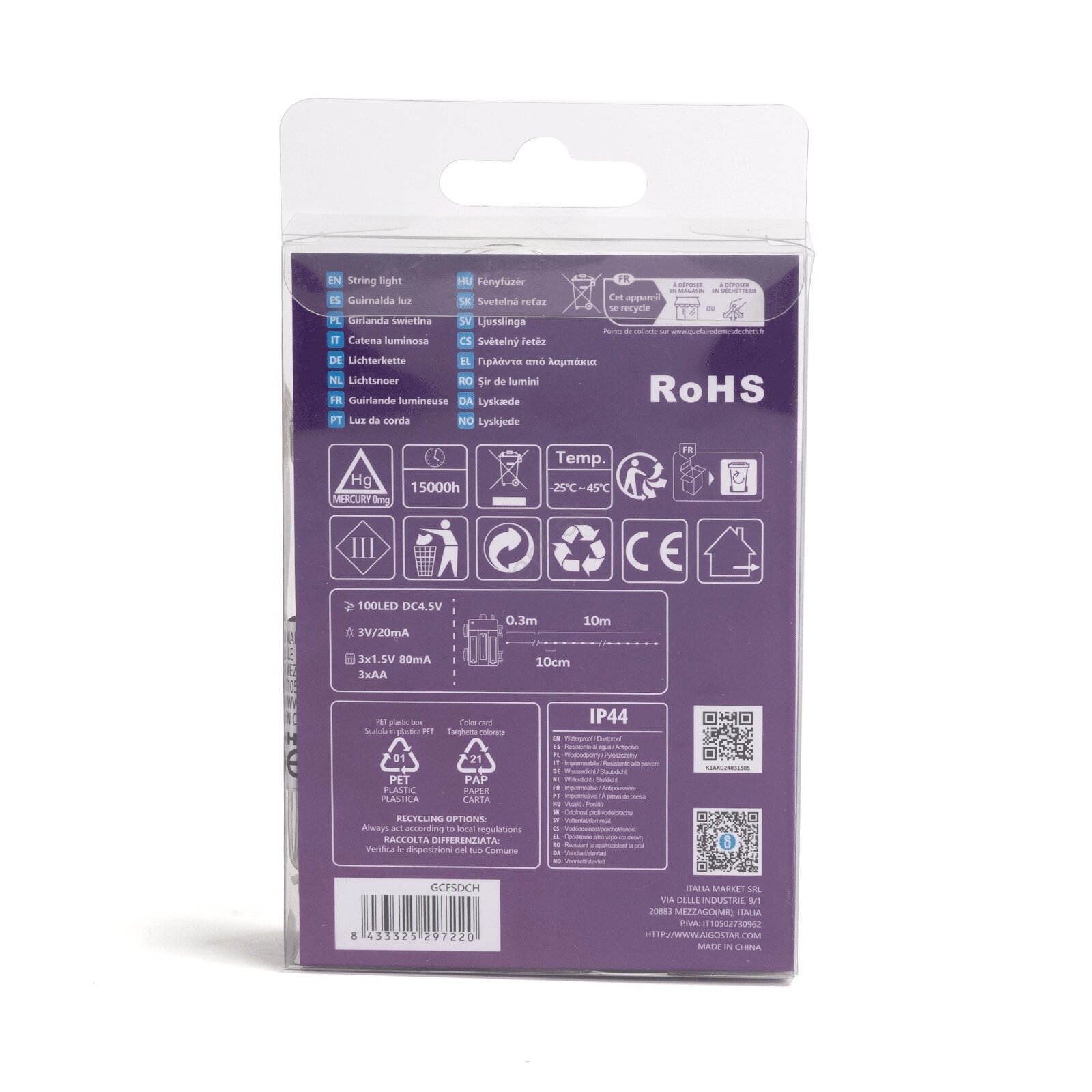 Aigostar - LED vonkajší reťaz 100×LED, 8 funkcií, 3×AA, 10,3 m, IP44, teplá biela