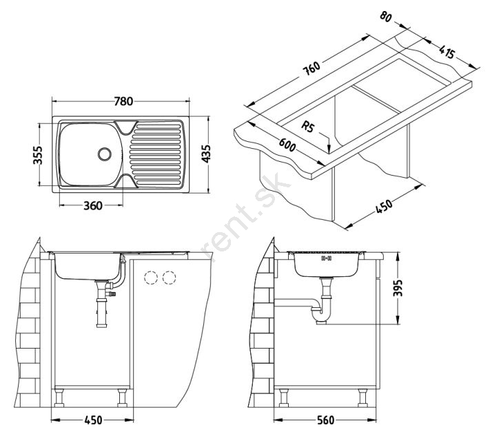 • Obsah balenia: nerezový drez, príchytky a tesnenia, výpusť 1 1/2, sifón s odbočkou na umývačku riadu, zátka.