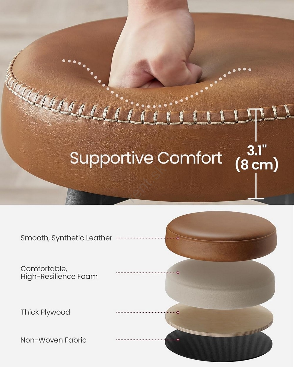 • Vodeodolný poťah zo syntetickej kože sa dá ľahko čistiť a matné oceľové nohy sú odolné voči poškriabaniu.