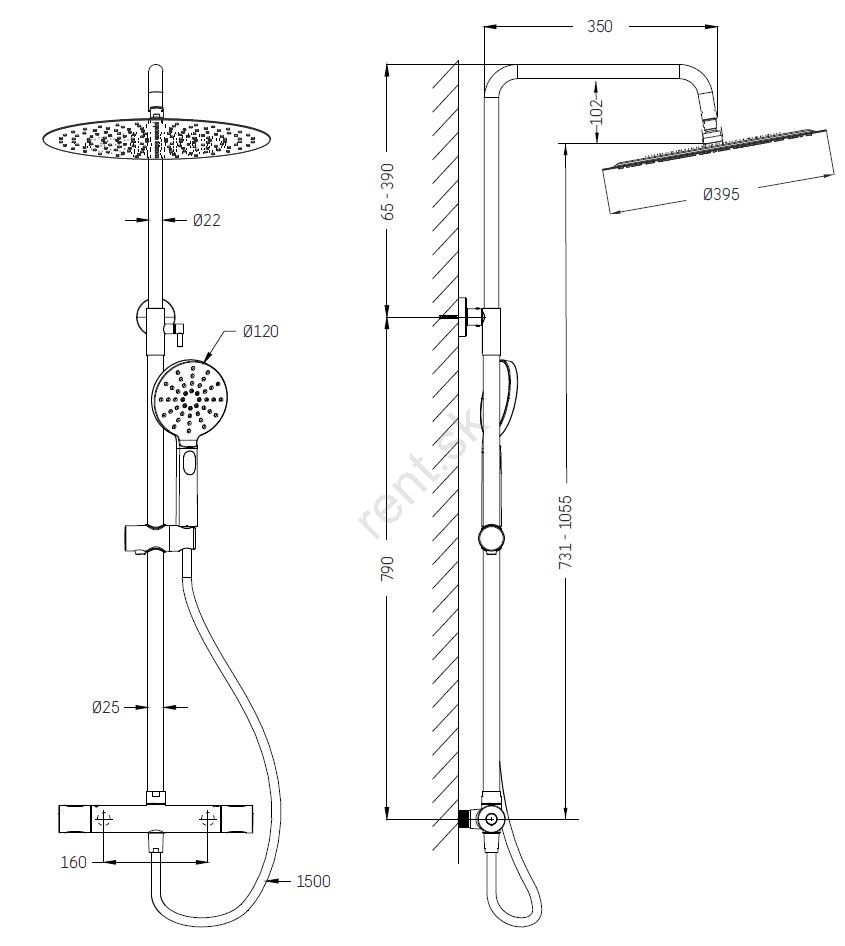 • Súprava sa skladá z termostatickej batérie z masívnej mosadze.