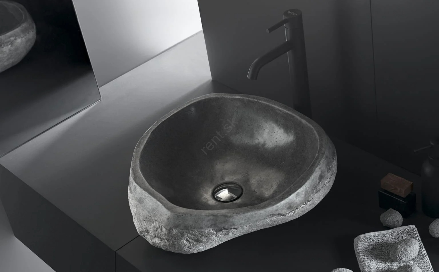 • Umývadlo je vyrezané z prírodného riečneho kameňa.