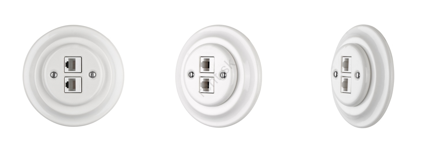 • Porcelánová Ethernetová zásuvka, 2x CAT.5E, 2x RJ45.