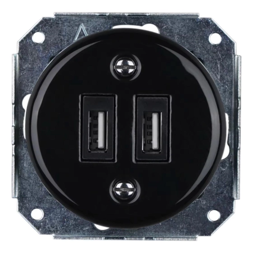 Bohemia-Design - Porcelánová retro USB napájacia zásuvka bez rámu 2x USB-A čierna