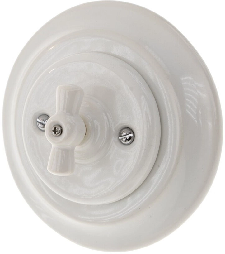 Bohemia-Design - Porcelánový retro otočný vypínač s rámčekom č. 5, biela