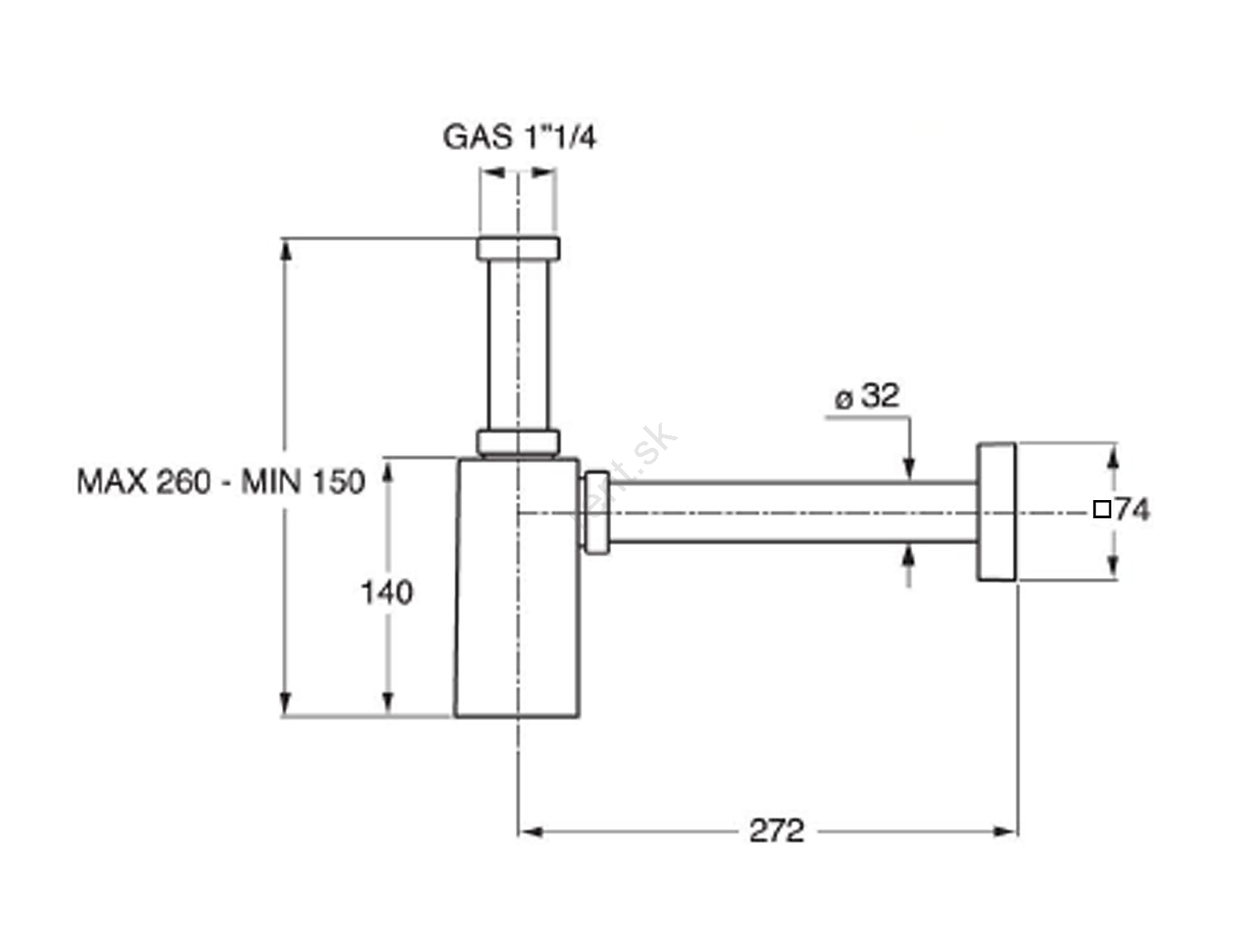 • Priemer odpadu je 32 mm a veľkosť závitu je 5/4".