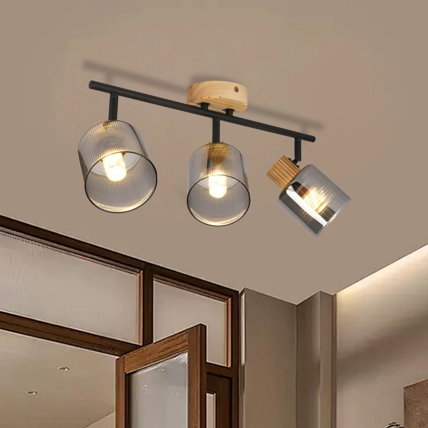 Brilagi - Bodové svietidlo HYGGE 3xE14/15W/230V drevo/dymové
