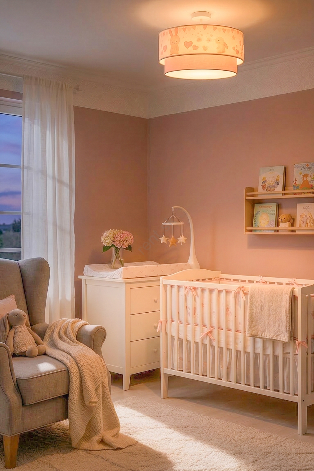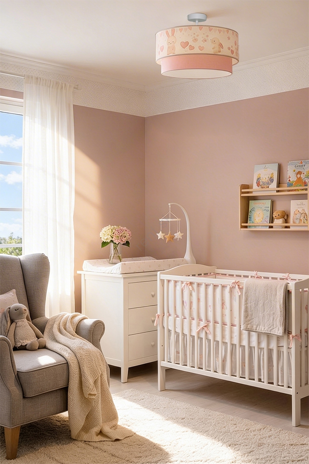 Brilagi - LED detský prísadený luster BOBO 1xE27/10W/230V pr. 40 cm krémová/ružová/s motívom zajačikov