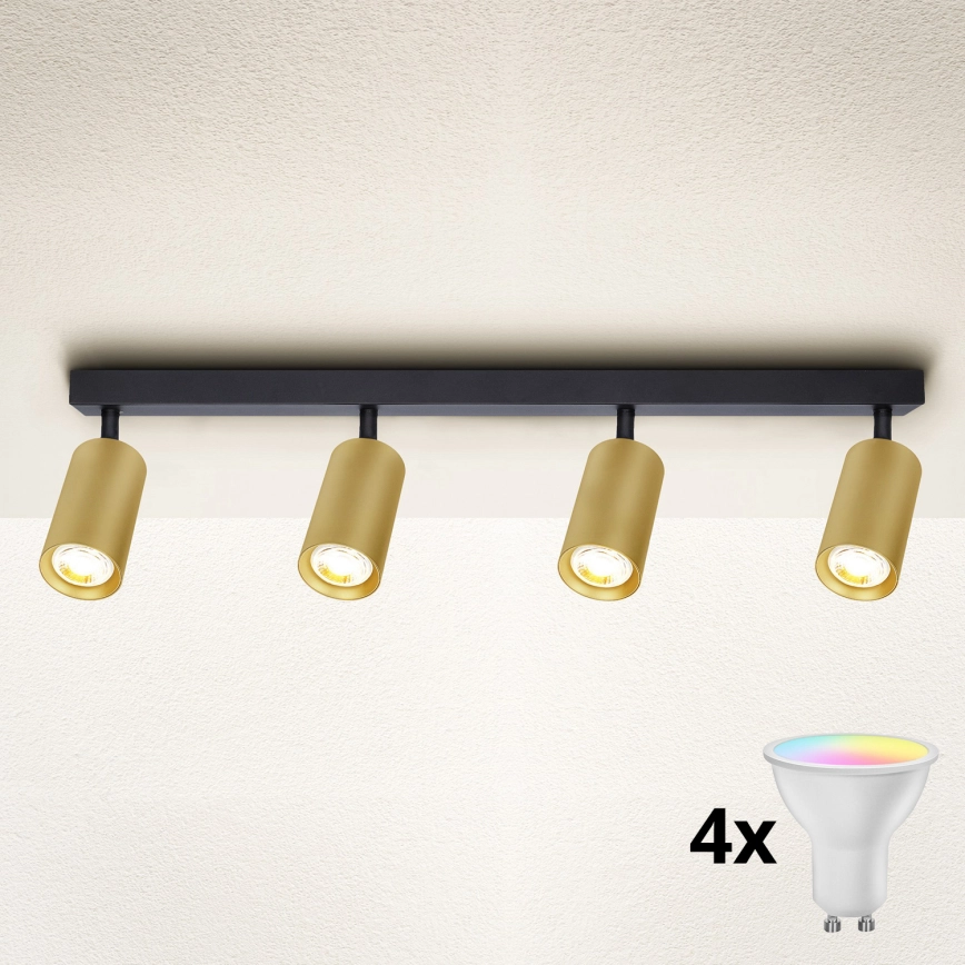 Brilagi - LED RGBW stmievateľné bodové svietidlo SELE GOLDEN 4xGU10/6W/230V 3000K čierna/zlatá + diaľkové ovládanie