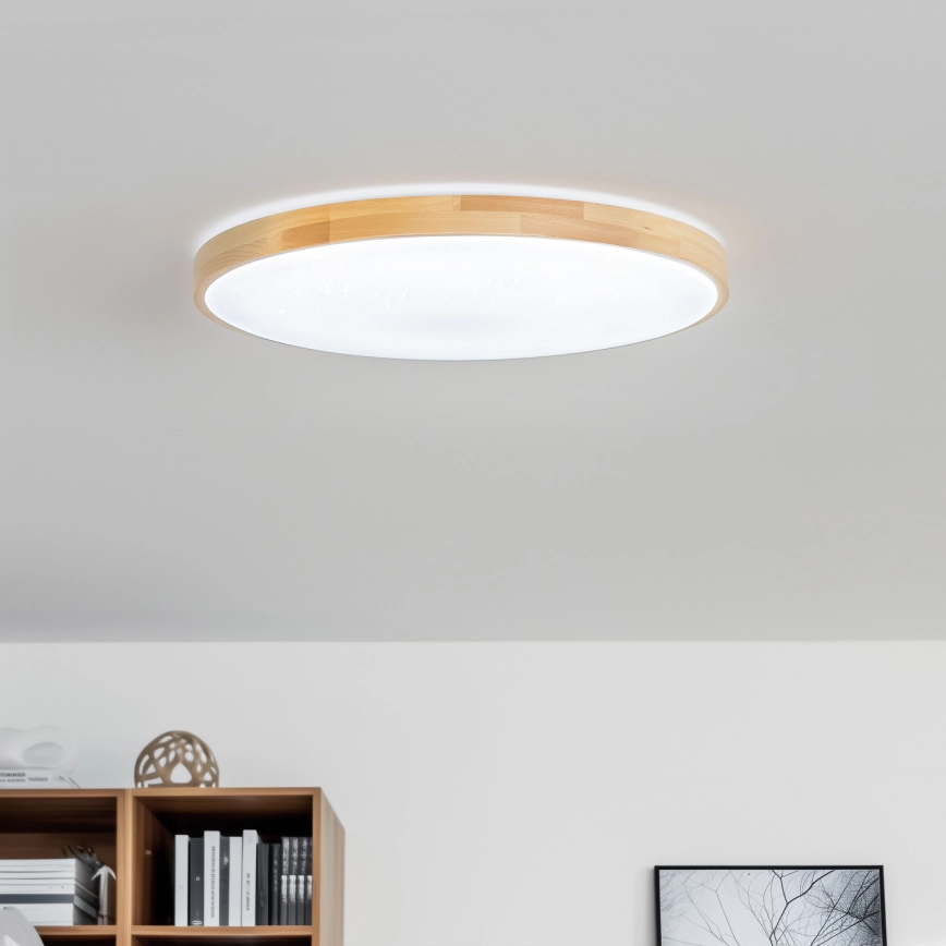 • LED Stmievateľné stropné svietidlo LENA LED/60W/230V 3000-6500K dub + diaľkové ovládanie