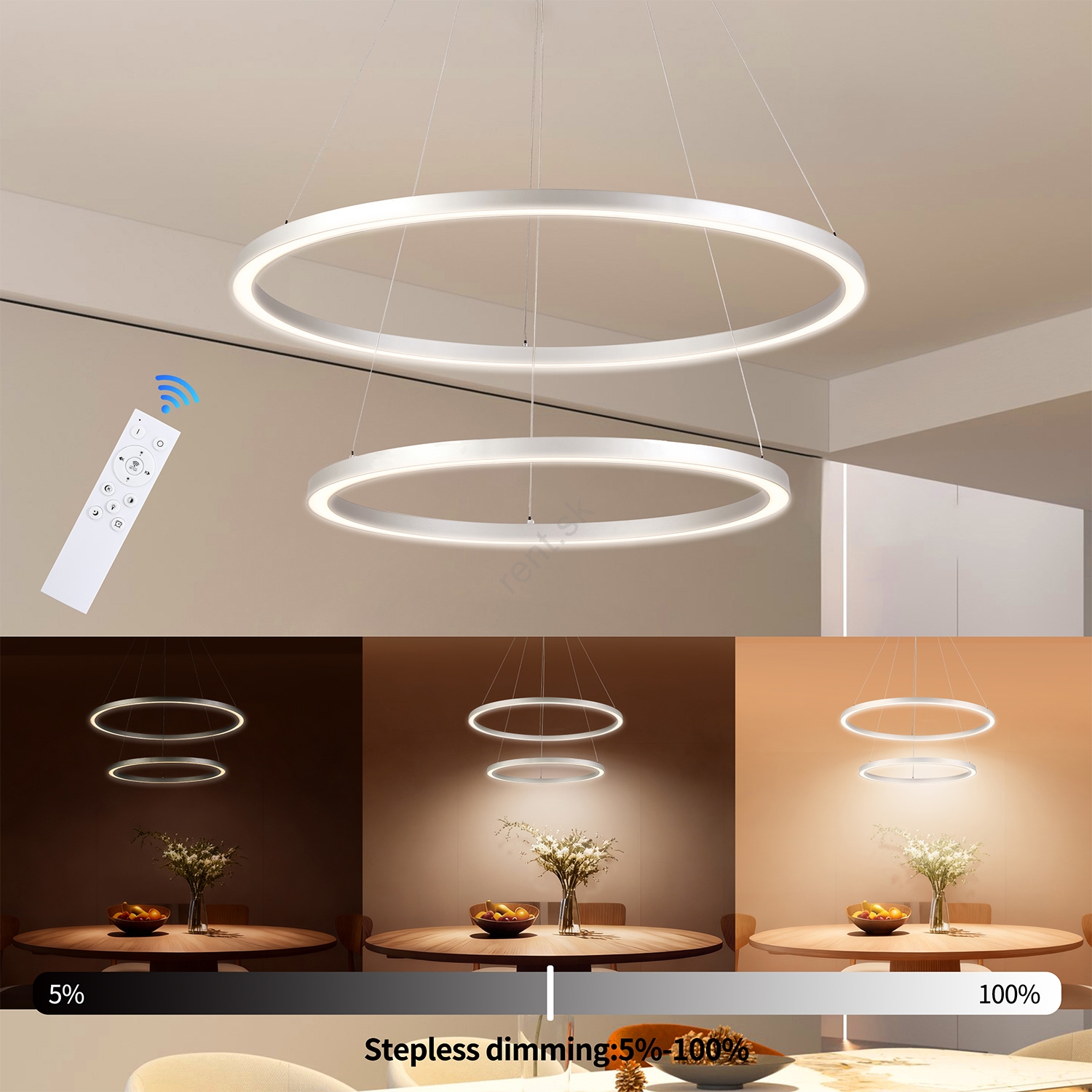 • Brilagi - stmievateľný LED luster na lane PORTOFINO LED/60W/230V 3000-6000K priemer 80 cm strieborný + diaľkové ovládanie