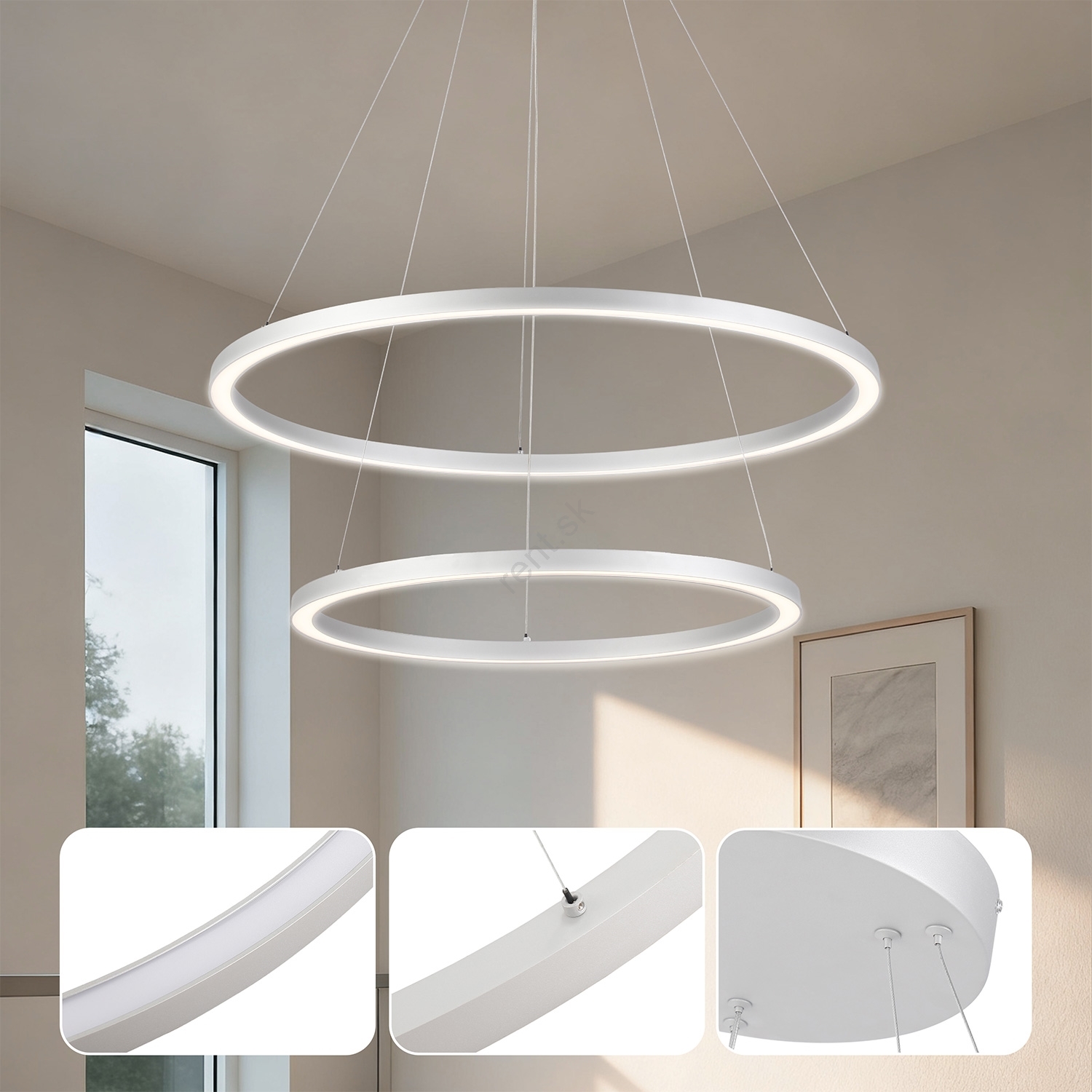 • Brilagi - LED stmievateľný luster na lane PORTOFINO LED/98W/230V 3000-6000K pr. 80 cm biela + diaľkové ovládanie