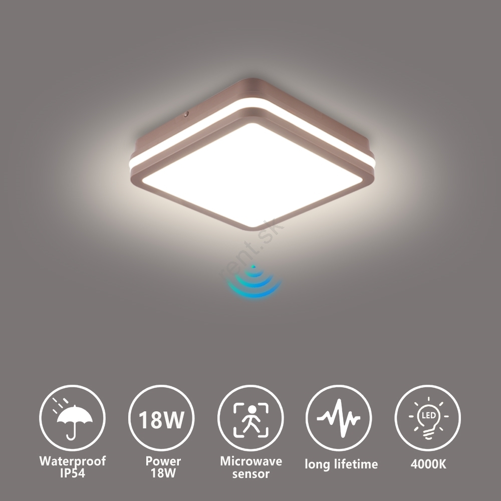 Brilagi - LED vonkajšie stropné svietidlo so snímačom BENE LED/18W/230V 21,5x21,5 cm hnedé IP54