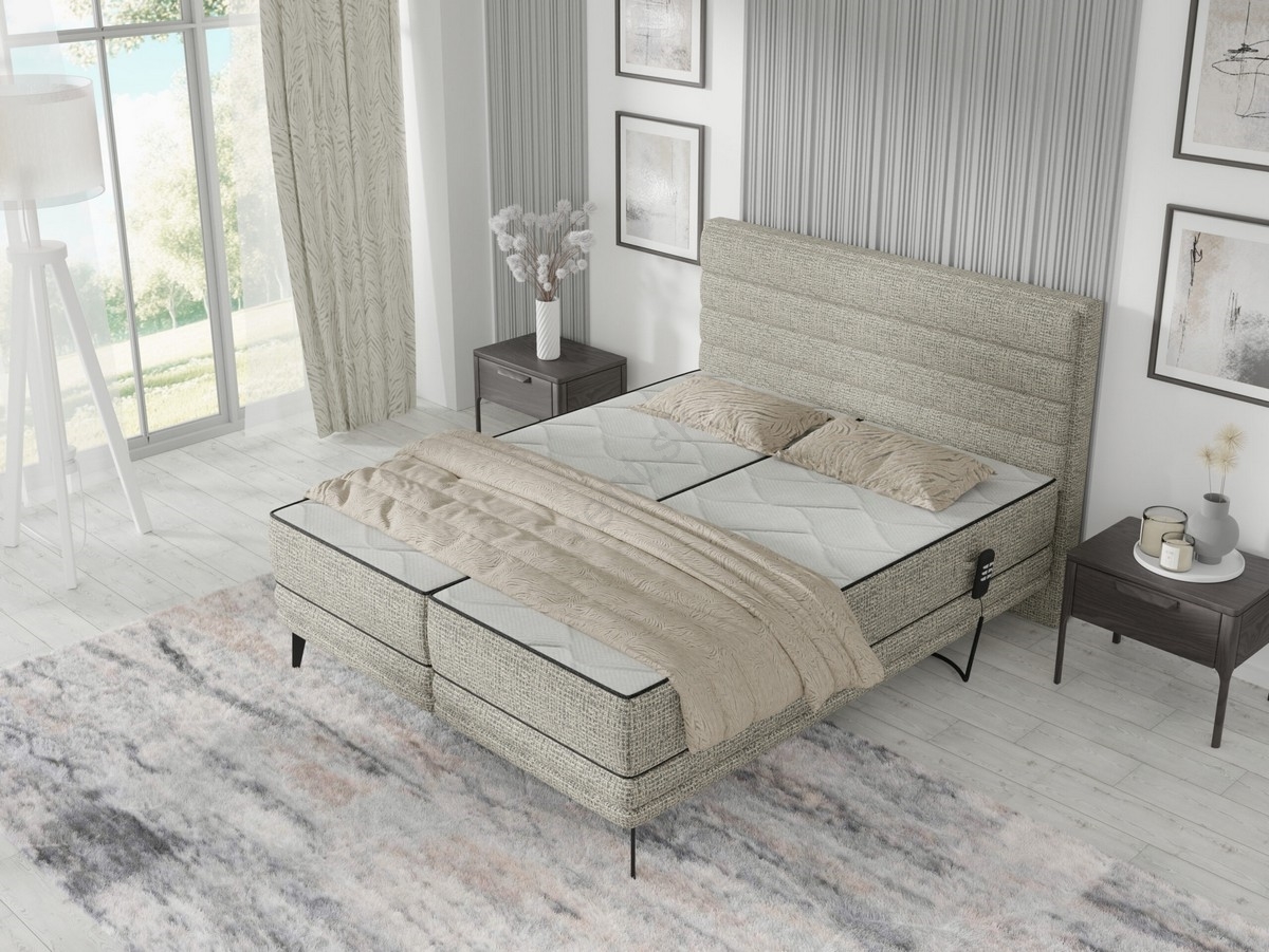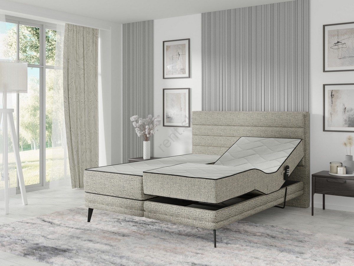 Elektricky polohovateľná čalúnená posteľ s matracmi MILA 180x200 cm sivá