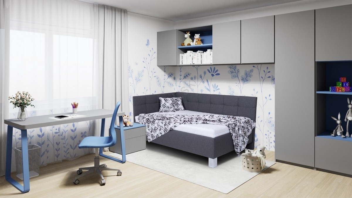 • Čalúnená posteľ MARIA PETITE 120x200 cm s matracom a úložným priestorom, sivá