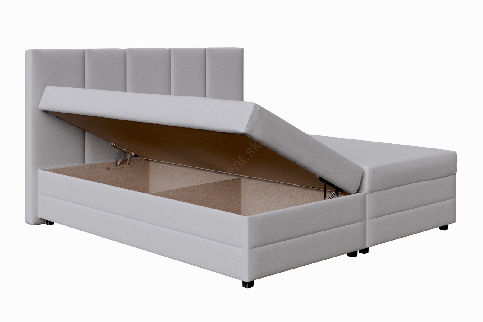 • Čalúnená posteľ s pružinovou matracou a úložným priestorom ISABEL 160x200 svetlosivá