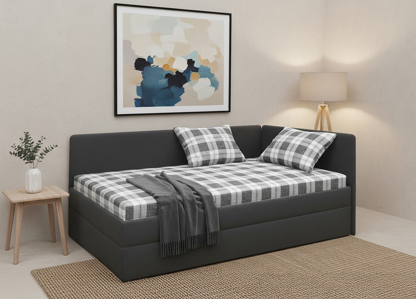 • Jednolôžková čalúnená válenda s čelom - Vhodná na každodenné spanie.