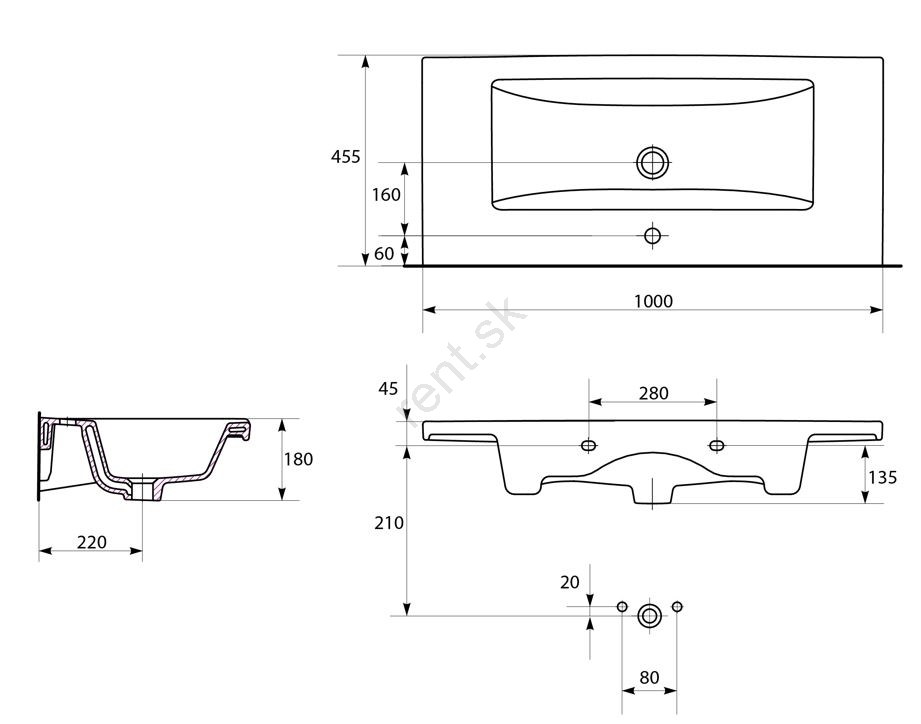 • Moderné a elegantné umývadlo s prepadom a otvorom pre batériu.