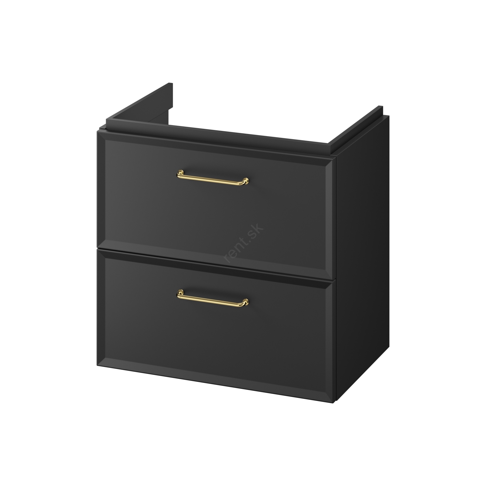 Čelo a korpus skrinky sú vyrobené z 16 mm drevotriesky s čiernym lakom.