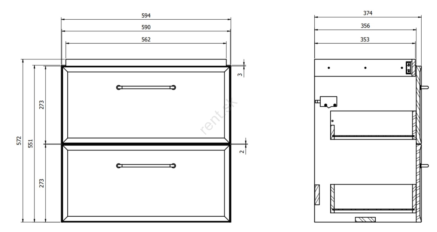 Skrinka má dve priestranné zásuvky s tlmeným dovieraním - systém tichého dovierania.