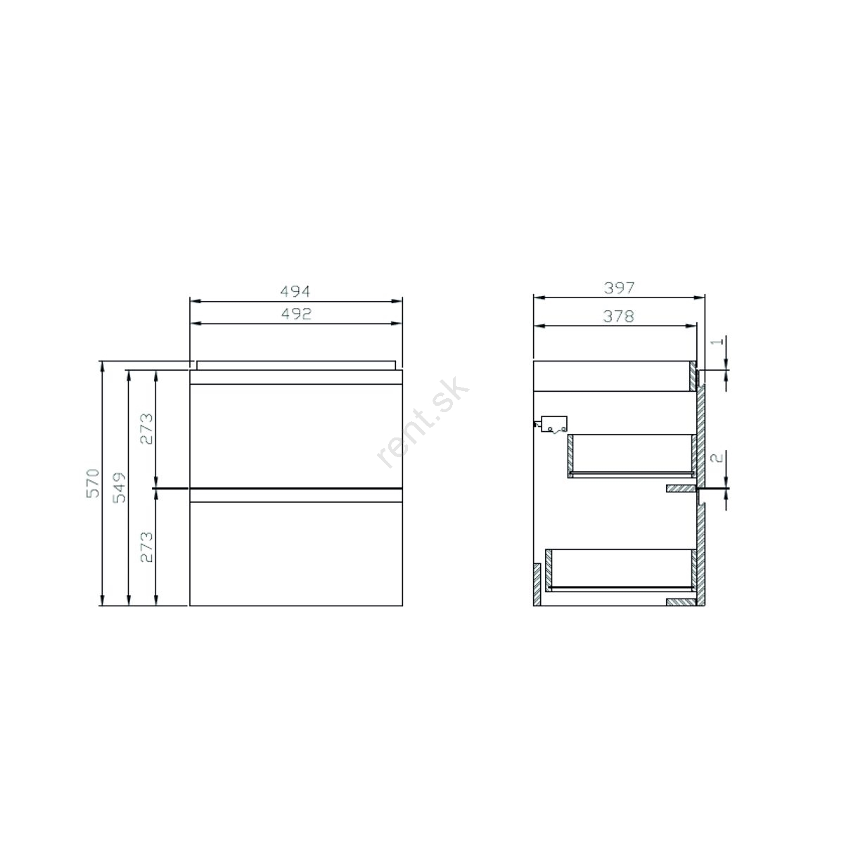 • Skrinka obsahuje dve priestranné zásuvky so systémom tlmeného dovierania.