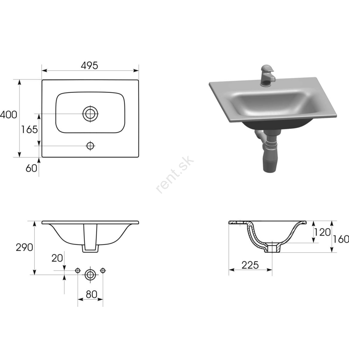 • Umývadlo zo šamotovej keramiky má klasický obdĺžnikový tvar s otvorom pre batériu a prepadom.