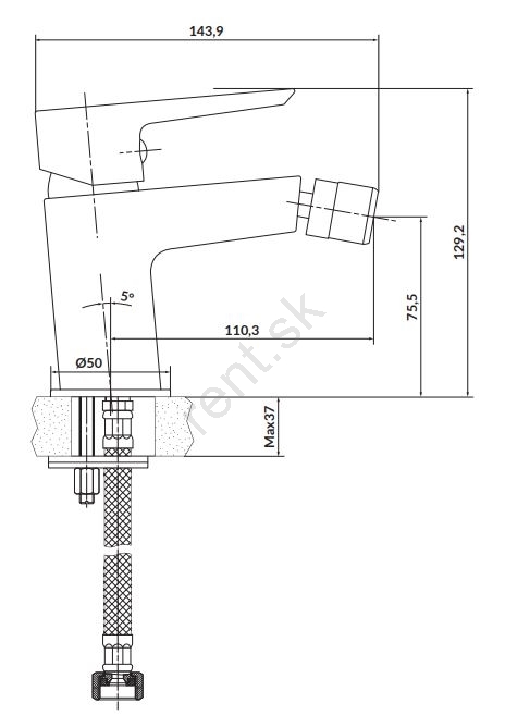 • Vodovodná batéria je tiež vybavená flexibilnými pripojovacími hadicami Eco EPDM s dĺžkou 40 cm.