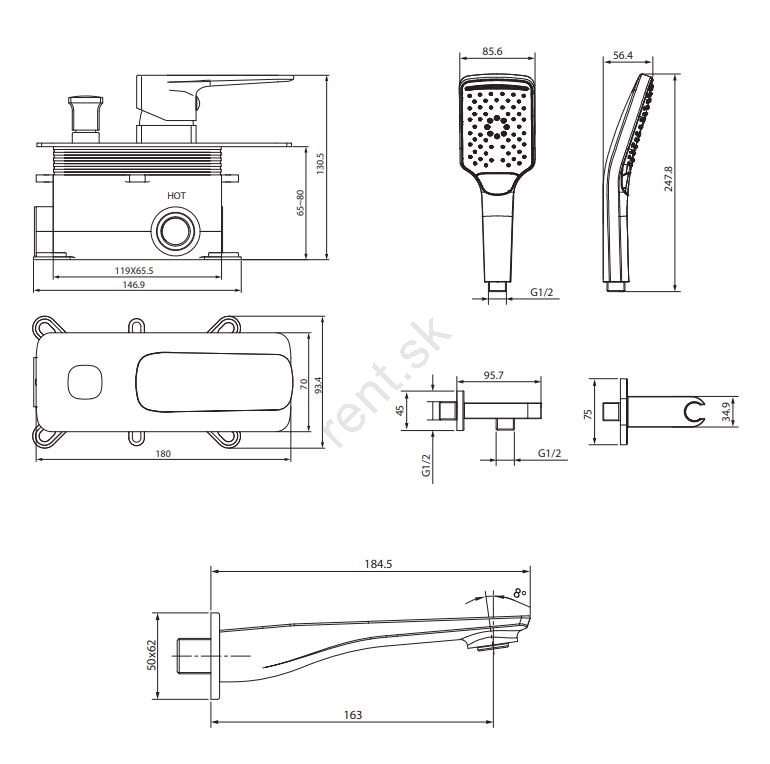 • Táto vaňová sada s podomietkovou batériou je elegantným doplnkom každej kúpeľne.