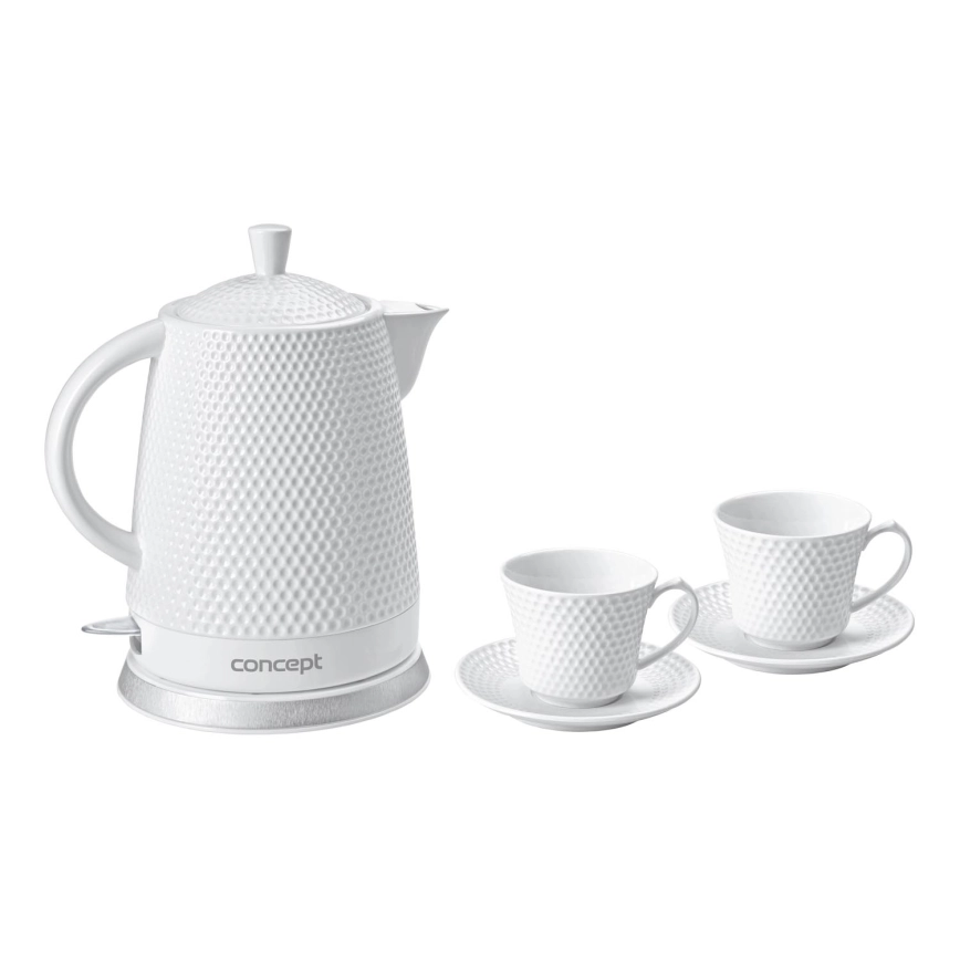 Concept RK0040 - Rýchlovarná kanvica 1,5 l 1500W/230V biela/keramika + 2 šálky s podšálkami