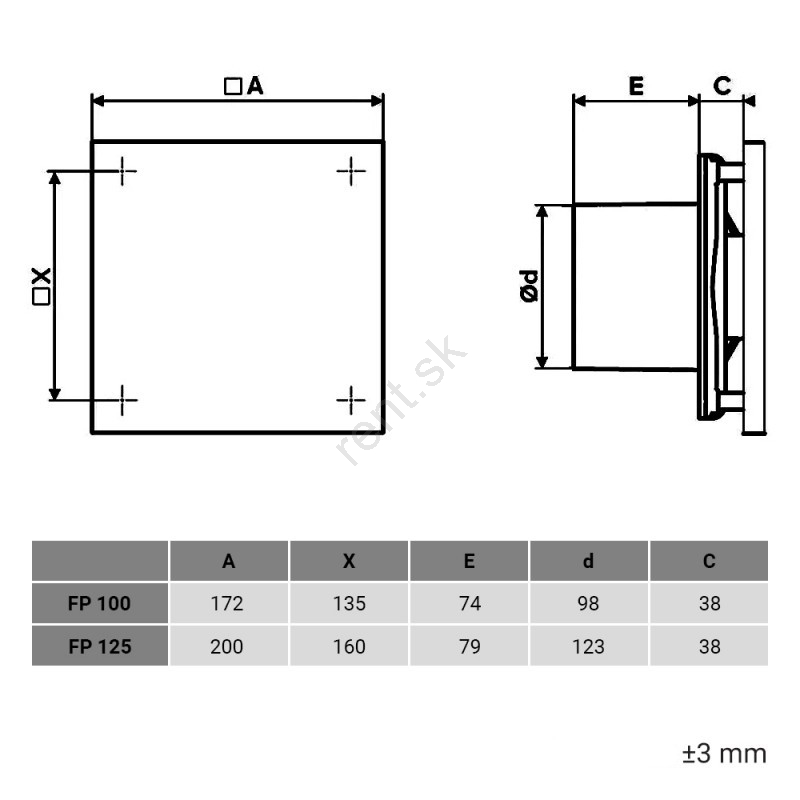 • Ventilátor je kompatibilný s potrubím o priemere 125 mm.