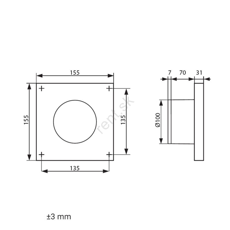 • Ventilátor je kompatibilný s potrubím s priemerom 100 mm.