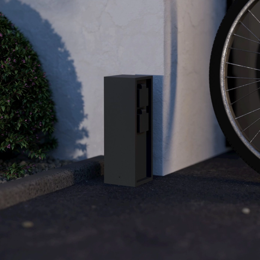 • Vonkajší zásuvkový stĺpik s dvoma zásuvkami, ideálny na pripojenie záhradných spotrebičov a osvetlenia.