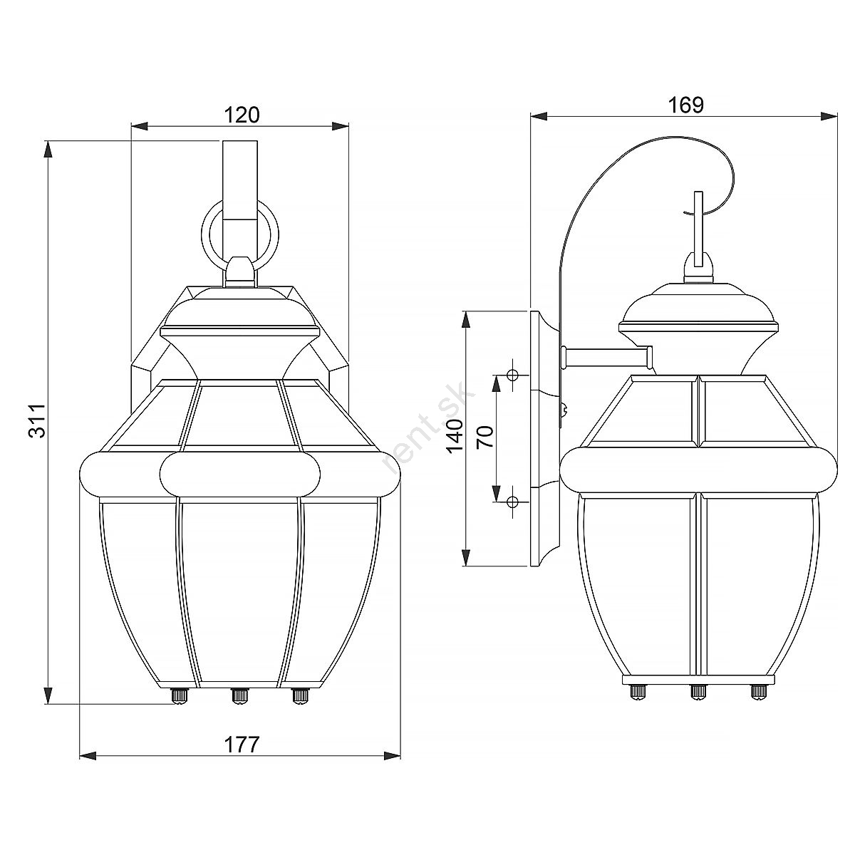 Elstead - Vonkajšie nástenné svietidlo NEWBURY 1xE27/60W/230V IP44 charakterizuje pekný dizajn a funkčné prevedenie.  Do svietidla je určená žiarovka s päticou E27. Tu si môžete kúpiť ďalšie žiarovky za výhodnú cenu. Získate tak zaujímavý doplnok do svojho domova.