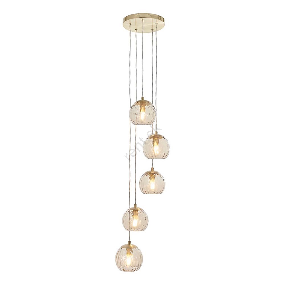 Endon 91972 - Luster na lanku DIMPLE 5xE14/7W/230V zlatá/dýmová béžová charakterizuje pekný dizajn a funkčné prevedenie.  Do svietidla je určená žiarovka s päticou E14. Tu si môžete kúpiť ďalšie žiarovky za výhodnú cenu. Získate tak zaujímavý doplnok do svojho domova.