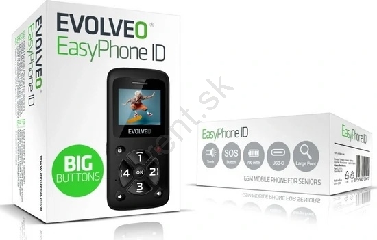 Evolveo - EasyPhone ID, mobilný telefón pre seniorov, čierna