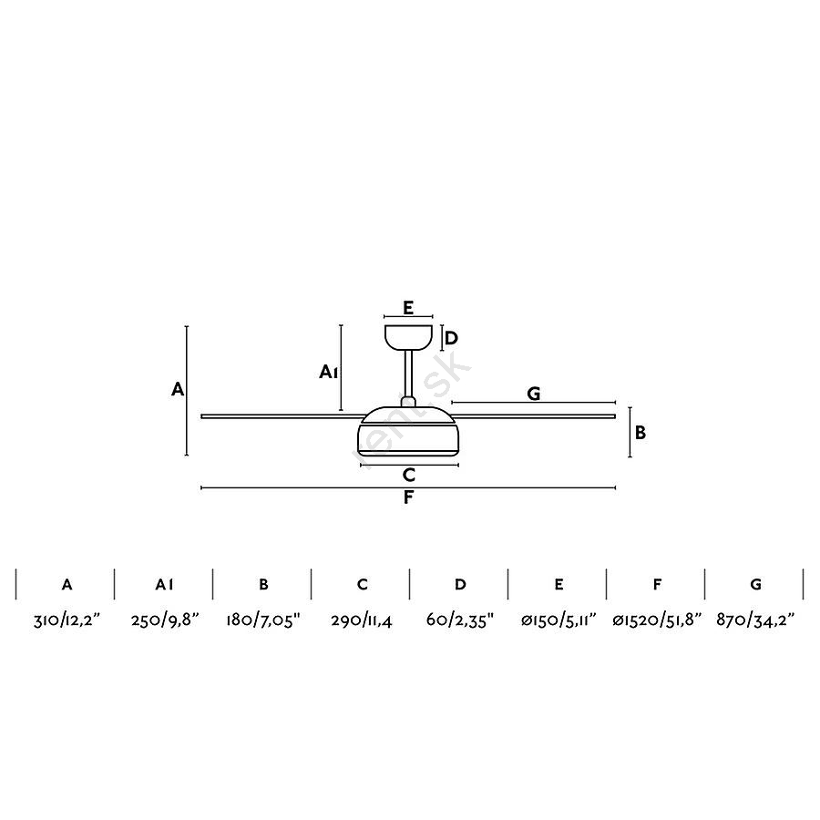 • Moderný stropný ventilátor s LED osvetlením.