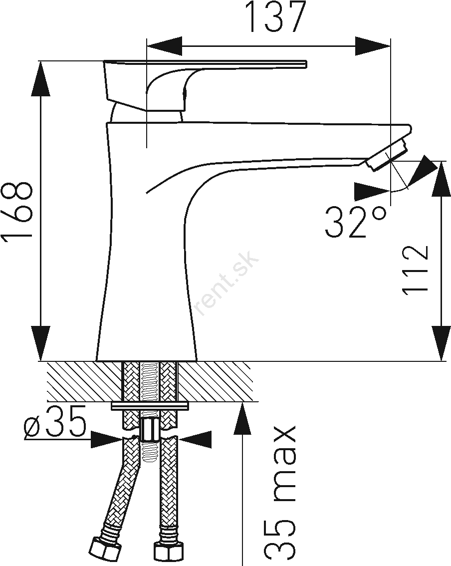 • Ovládací prvok: keramická kartuša 35 mm.