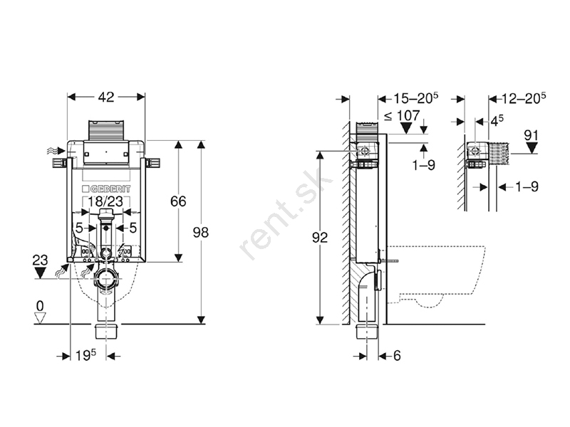 Geberit 110.010.00.1 - Podomietkový modul pre závesné WC Kombifix 98 cm