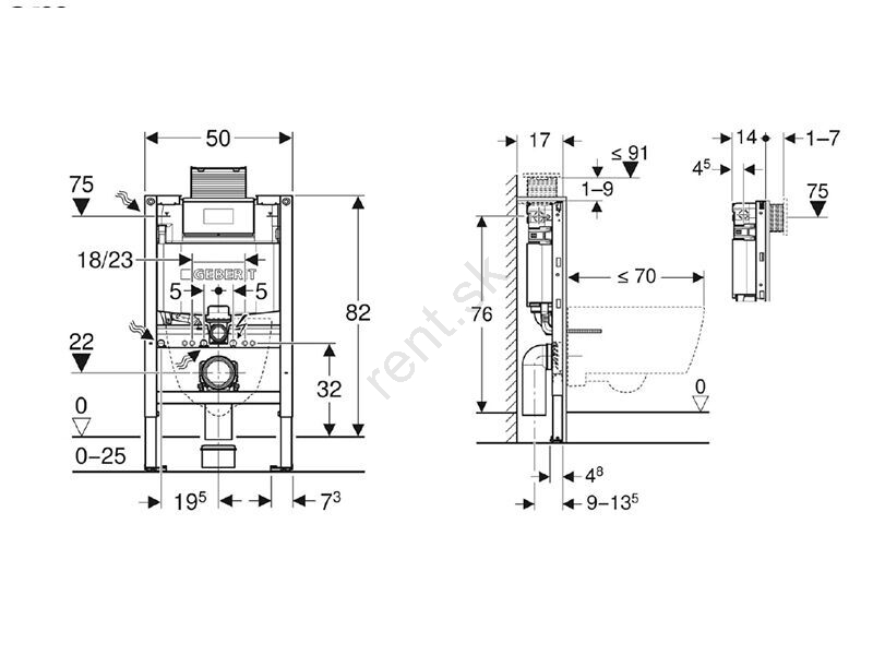 • Montážny prvok pre závesné WC so zabudovateľnou nádržou pod omietku.