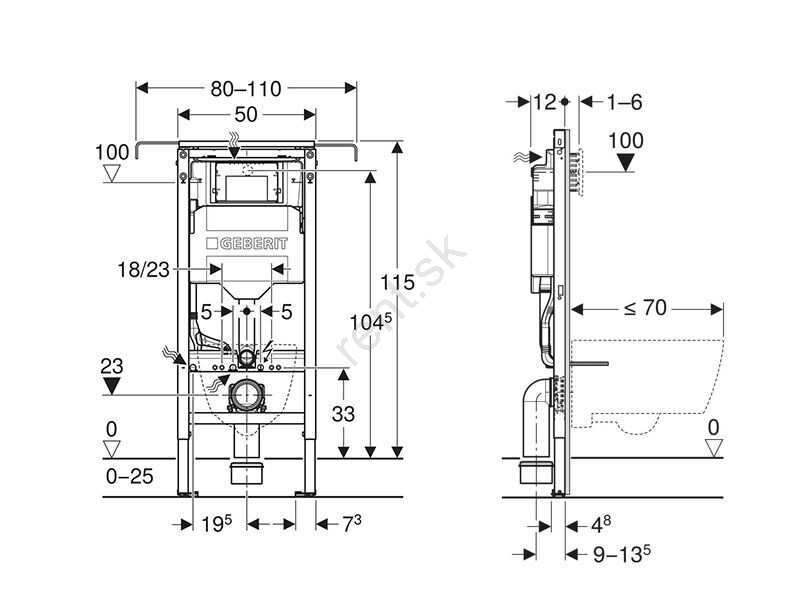 Geberit 111.355.00.6 - Podomietkový modul pre závesné WC Duofix 115 cm