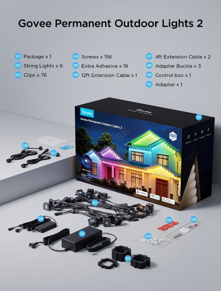 • Permanentné vonkajšie osvetlenie Govee je spoľahlivým a štýlovým riešením pre exteriérové osvetlenie, ktoré dokáže premeniť akýkoľvek priestor na ohromujúcu svetelnú scénu.
