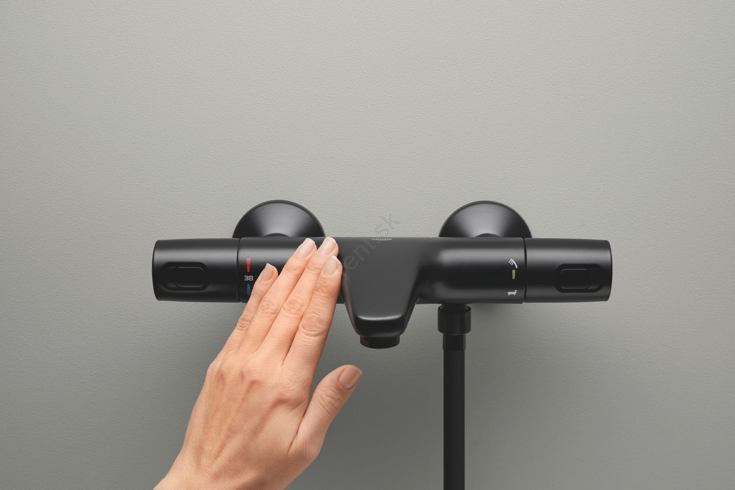 • Bezpečnostné tlačidlo GROHE SafeStop nastavené na 38 °C chráni pred nechceným zvýšením teploty.