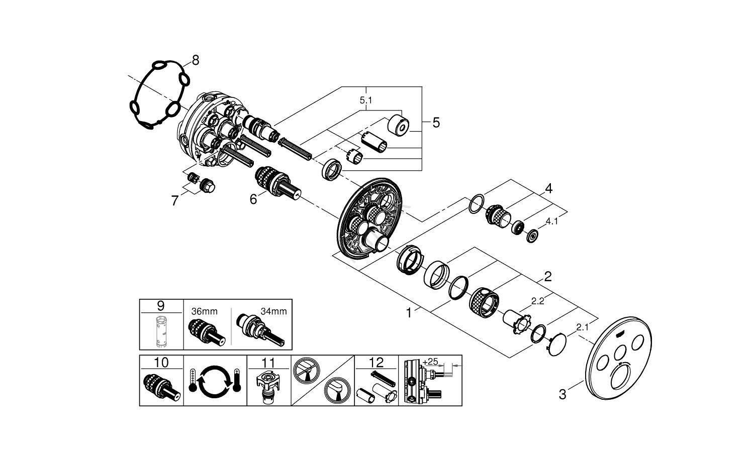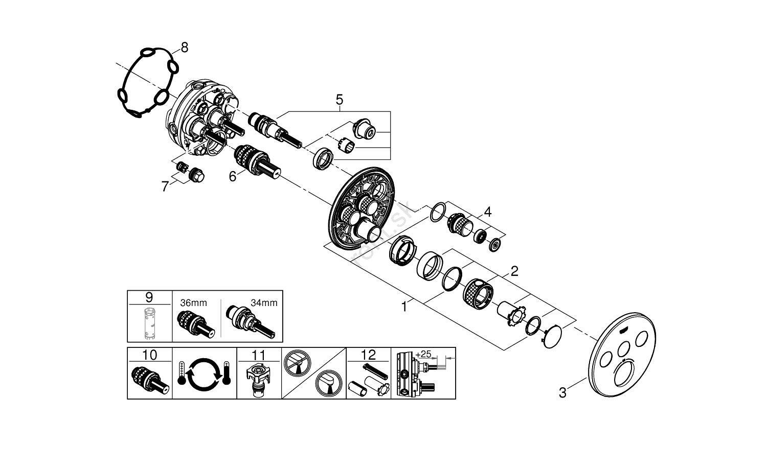 • Kompaktná kartuša GROHE TurboStat s voskovým termočlánkom pre rýchlu a presnú reguláciu teploty.