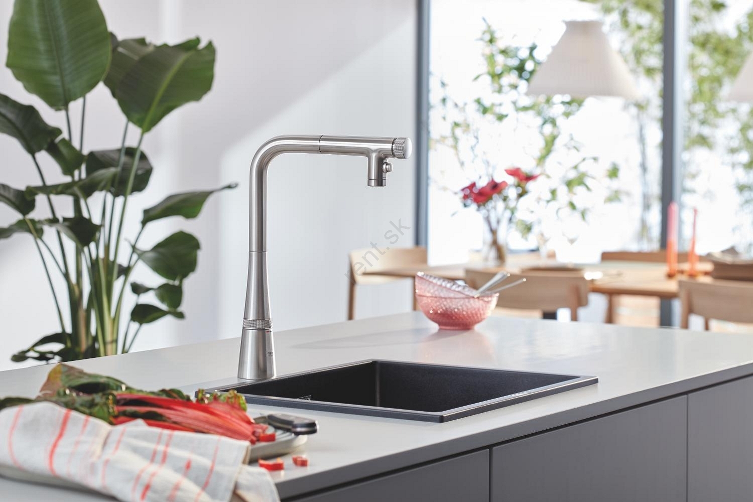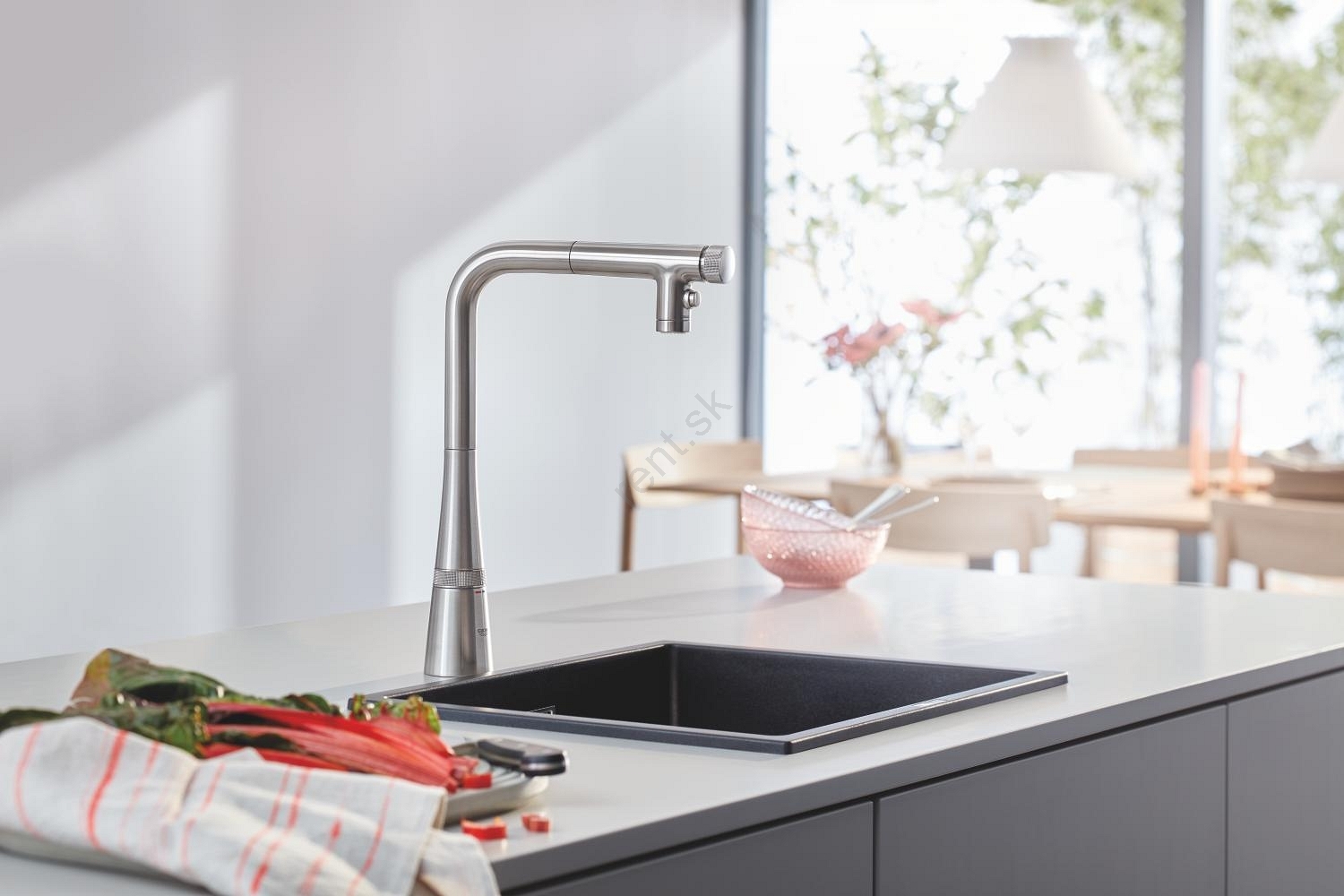• Moderný kompozitný drez GROHE K700U pre elegantný vzhľad kuchyne.