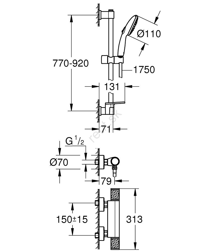 GROHE 34853001-Termostatická sprchová batéria PRECISION FEEL + súprava 90 cm chróm