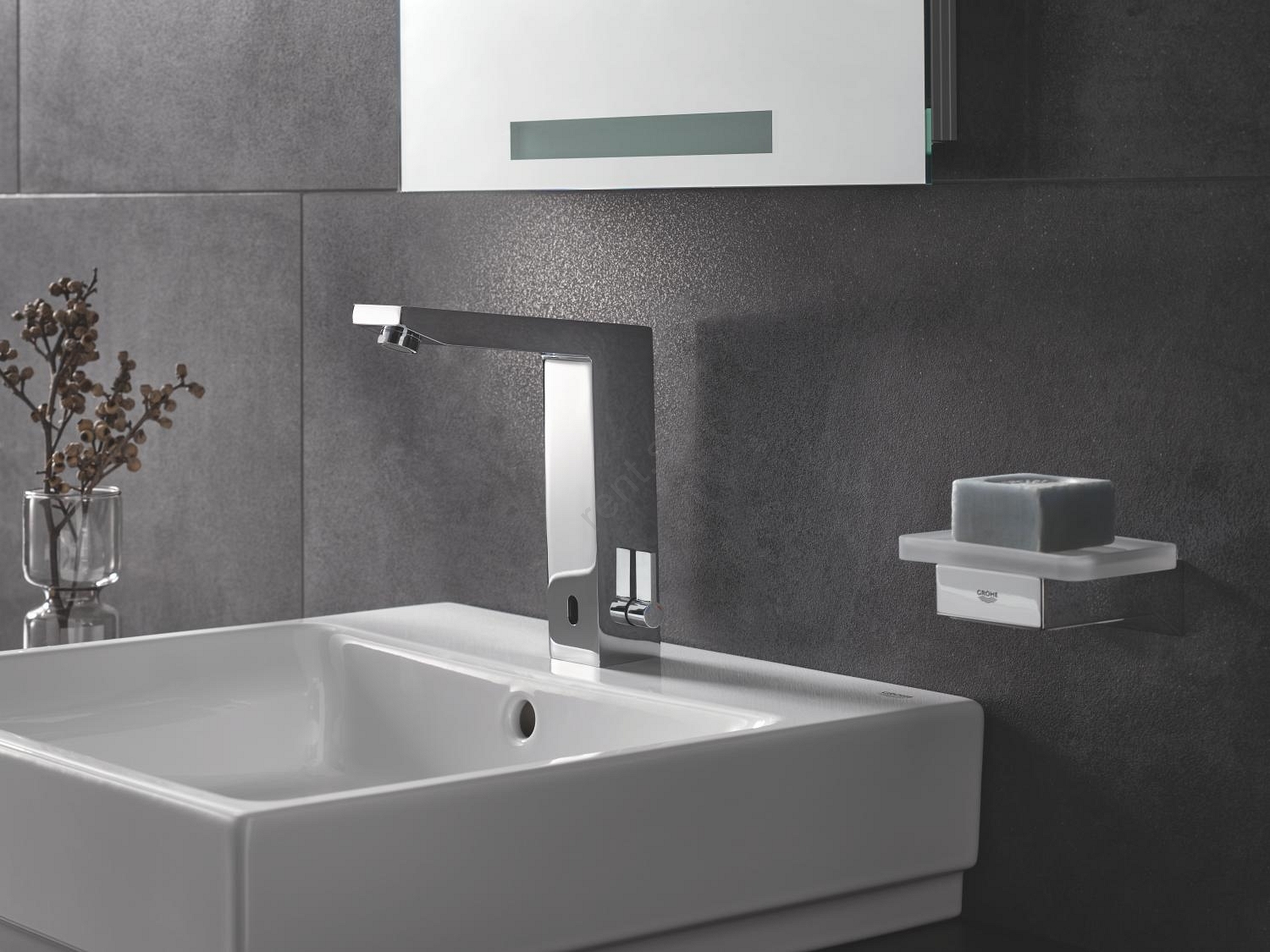 • Bezdotyková umývadlová batéria s infračerveným senzorom pre monitorovanie, nastavenie a servis.